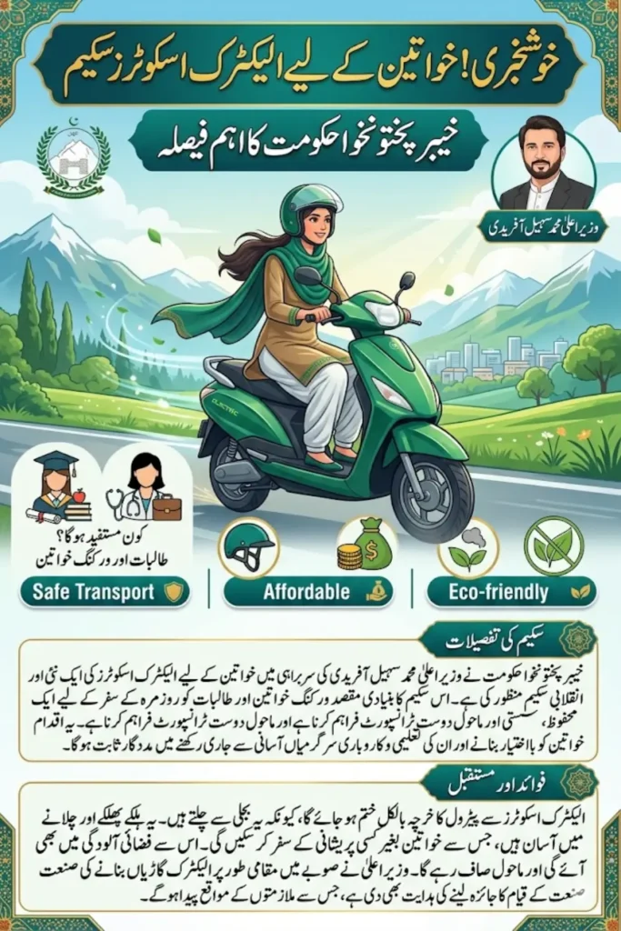 The Khyber Pakhtunkhwa government has approved a new scheme to provide electric scooters for women across the province. The initiative covers working women and female students. It aims to make daily travel safe, affordable, and environmentally friendly.